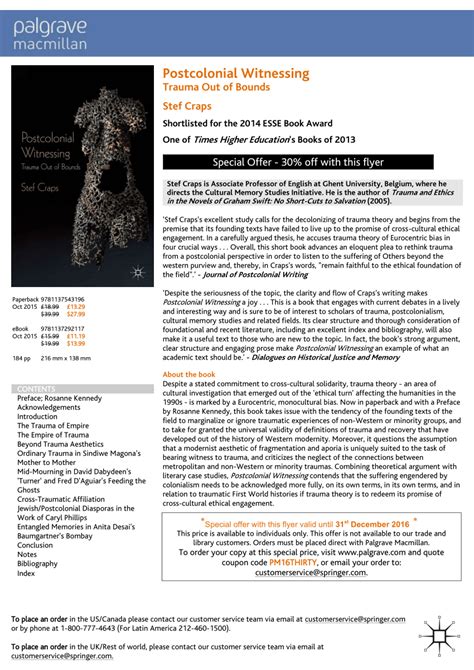 Read Online Postcolonial Witnessing: Trauma Out of Bounds PDF Library Genesis